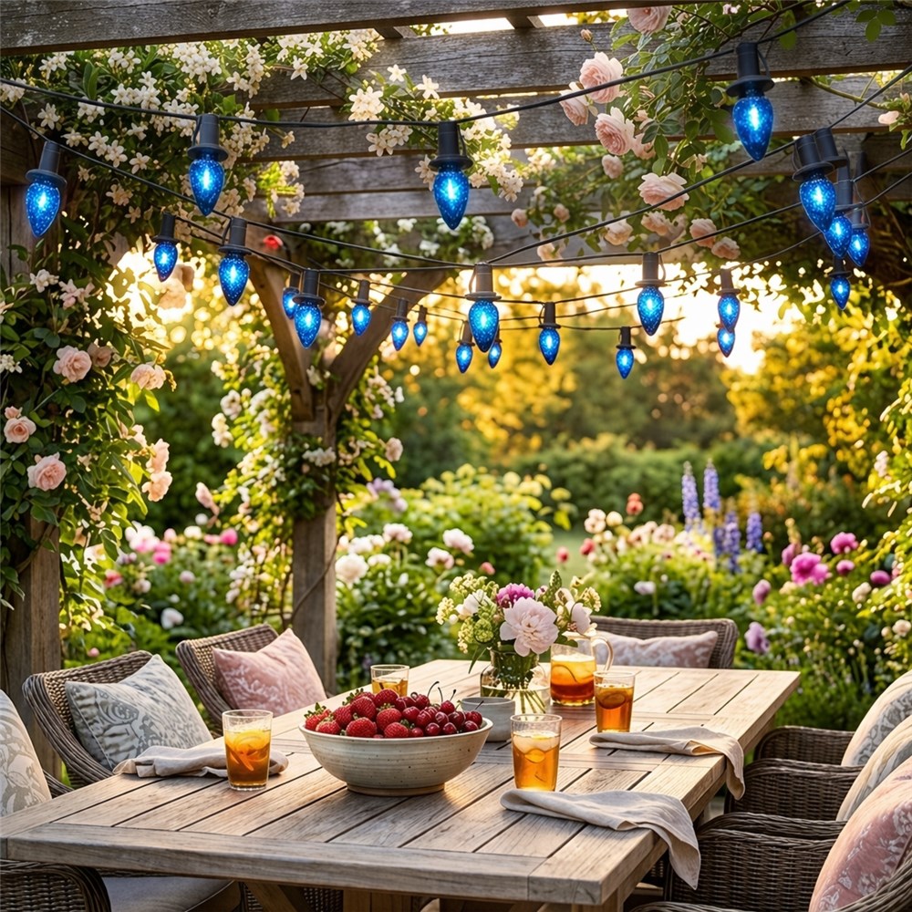 Osvětlení poskytuje příjemné světlo, které perfektně dekorativně osvětlí vaši terasu, zahradu nebo altán.